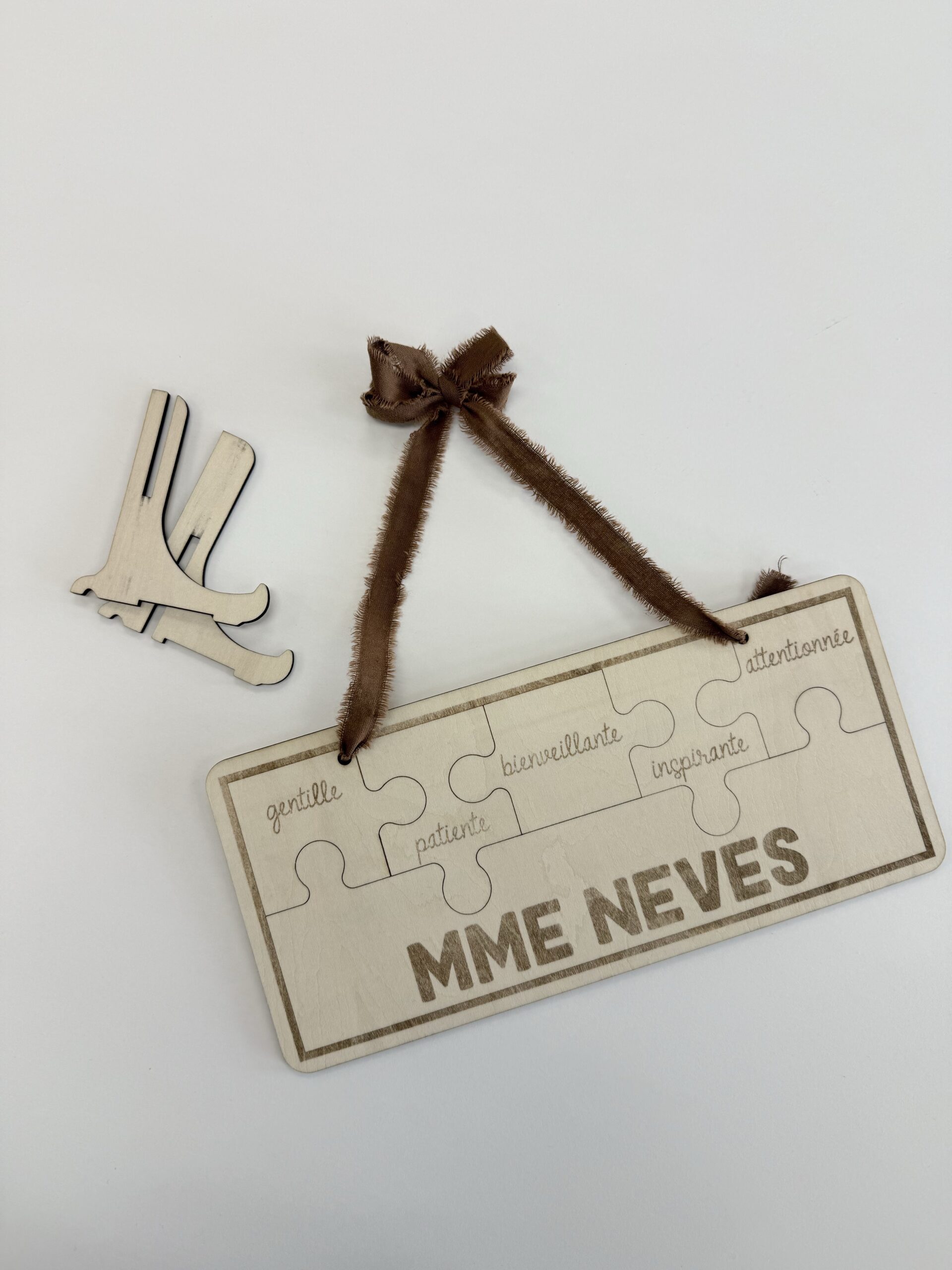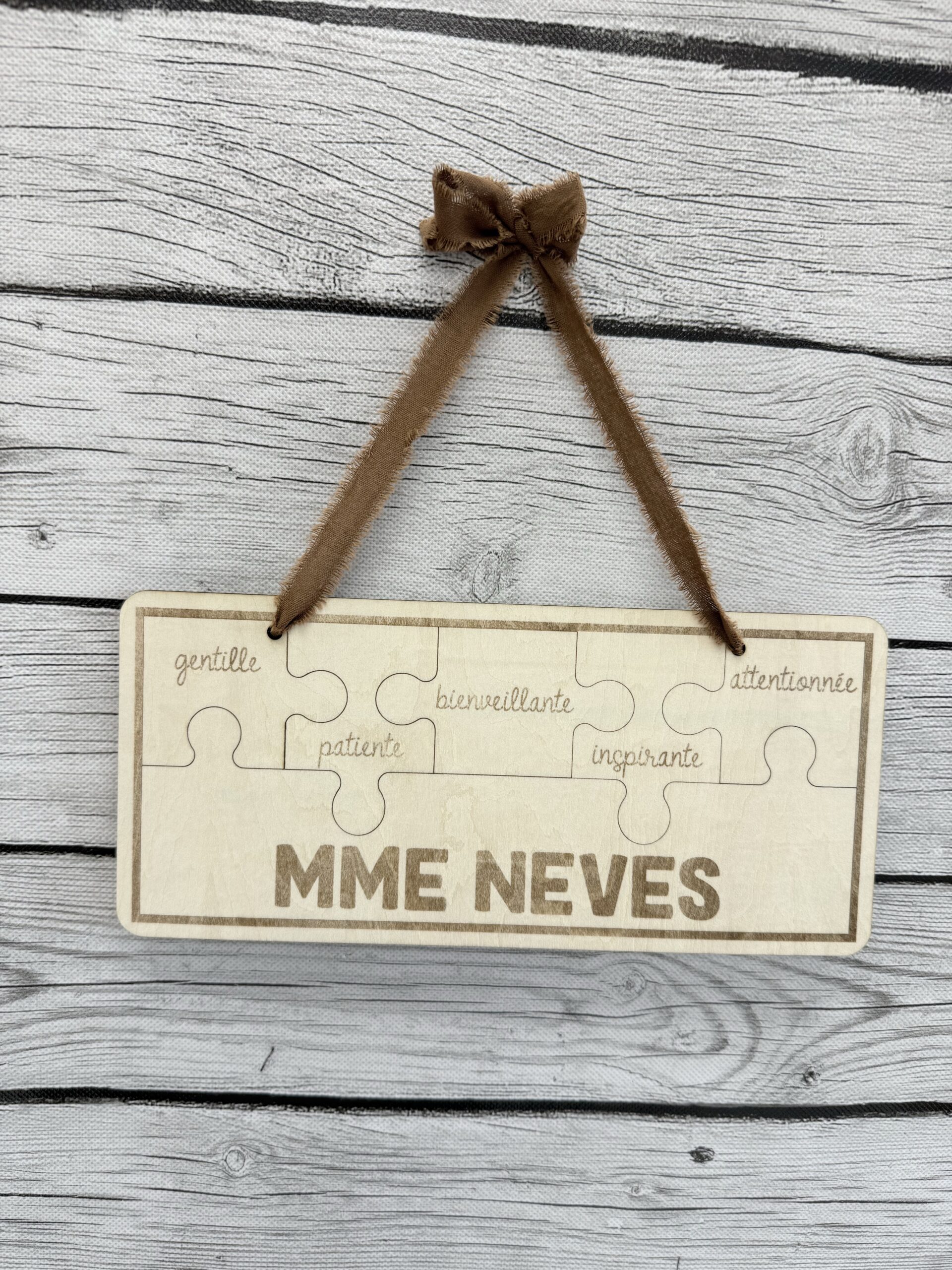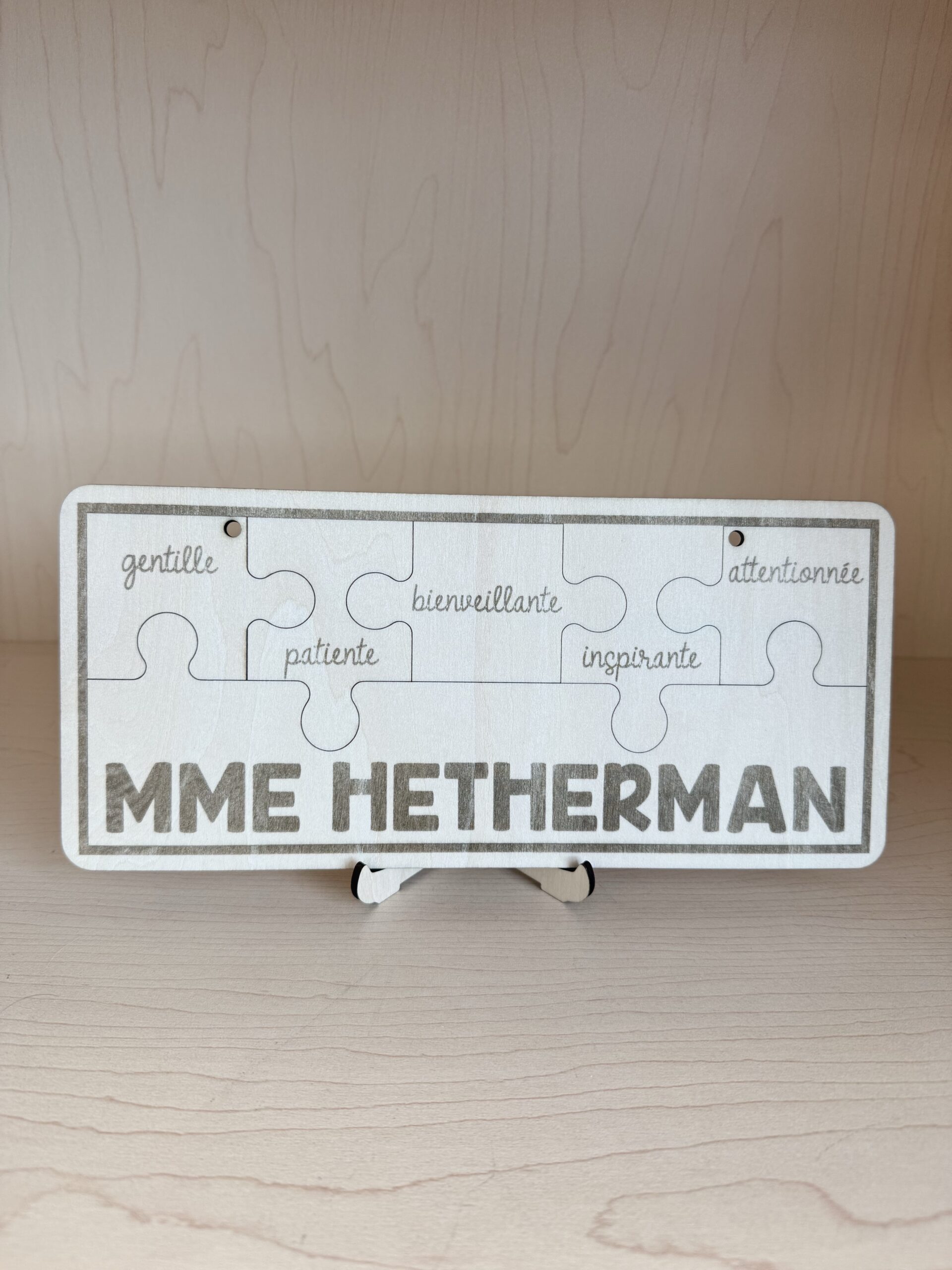 This personalized wooden puzzle plaque is a thoughtful keepsake for a special teacher who brings warmth, kindness, and heart into your life. Designed with a natural rustic finish, it features five meaningful qualities that come together like puzzle pieces — each one a reminder of the impact a caring educator can make.
